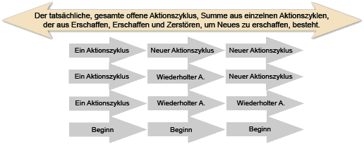 Ein Aktionszyklus hat einen Anfang, dann eine oder mehrere Aktionen und ein Ende. Der Beginn eines Zyklus kann neu entstehen oder sich auf einen zuvor beendeten Zyklus gründen. Ein Zyklus kann begonnen werden, ohne ihn zu beenden. Ein Zyklus kann sich mehrere Male nacheinander oder in unterschiedlich großen zeitlichen Abständen wiederholen.