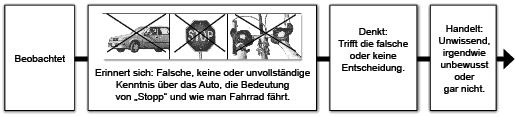Ich kann nicht wissen. Dies ist der Zustand, der unmittelbar auf das Nichtwissen folgt, wenn jemand versucht etwas zu wissen. In der Regel weiß derjenige noch nicht, wie man lernt, und erwartet gleich zu wissen. Da dies normalerweise scheitert, stellt er fälschlicherweise fest, dass er nicht lernen kann, also nicht wissen kann. Dafür werden häufig merkwürdige Erklärungen geliefert, z. B. dass es ihm nicht angeboren ist, dass er es nicht braucht oder keine Zeit dafür hat, kein Interesse usw.