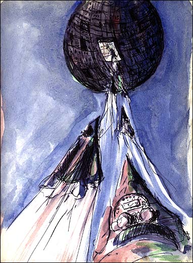 Information on this pieceTitle: Docking Number of art piece: 1071 Type: Graphic Technique: Felt-tip and water color on paper Style: Vision Topic: Evolution Period: Modern