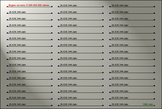 A time of evolution on earth. How old is our earth? Not everybody knows that. Children usually don’t, but there are a lot of adults who are ignorant either. Not everybody is aware of that or takes it as granted, much less that we think of it. How does everything change over the gigantic number of years, and how relative and small is the time in which we are living at the moment? Can we tell from it that today isn’t the final time, and that we have to expect further changes? How many years will be there for us?